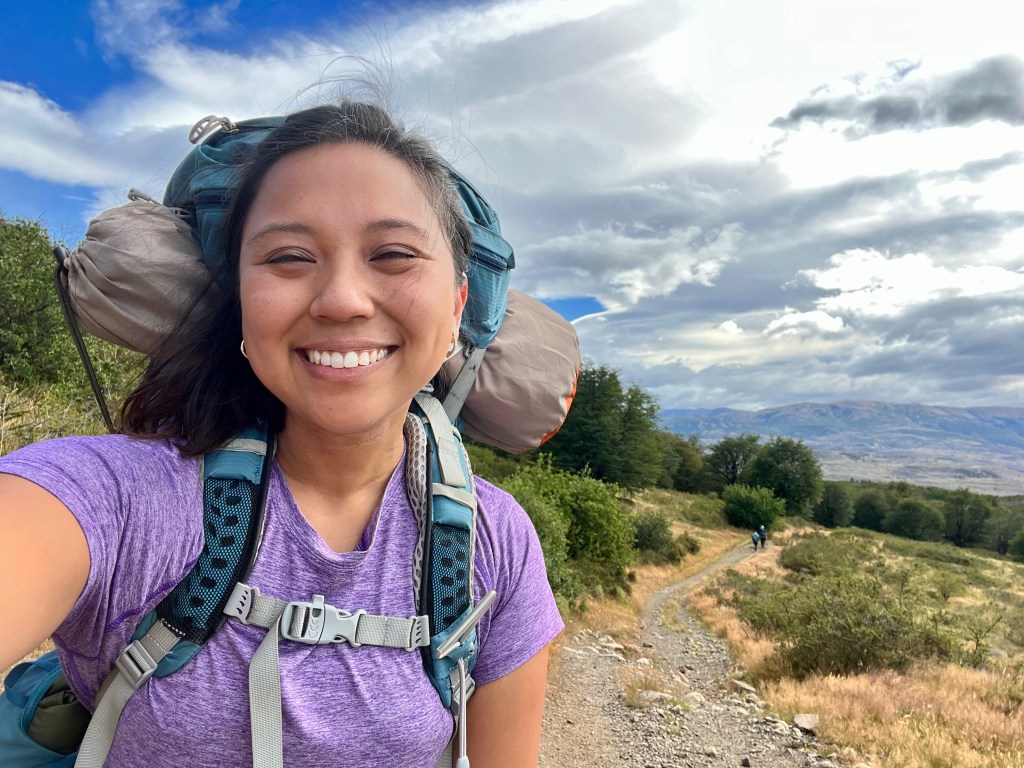 As I took the first steps towards the mountain, my stomach filled with butterflies, and I smiled big. Holy shit! I am hiking in Patagonia! For a moment, my backpack did not feel heavy even though the trail was steadily rising in elevation. I felt ecstatic! If I could have jumped for joy, I would have.