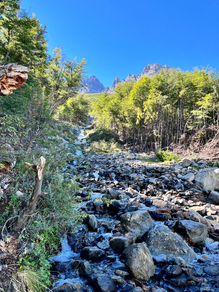It was a beautiful introduction to the Patagonian backcountry. Forests of Lenga trees, viewpoints of healthy rivers, and distant snowy peaks. At times, strong winds forced me to stop and squat to keep my balance.
